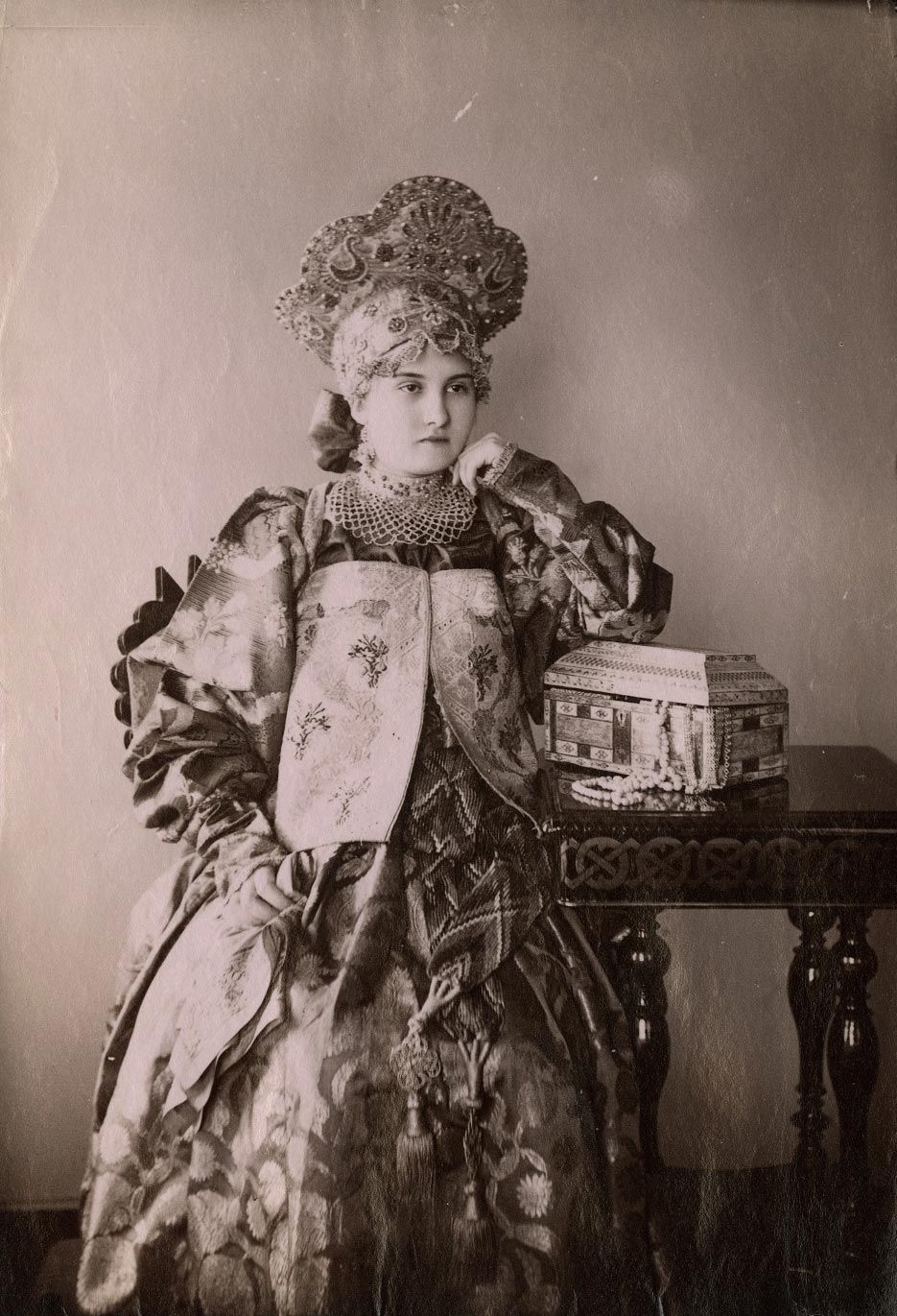 Слово организаторам потрясающей Выставки : «Собрание русской старины» – это несколько тысяч образцов праздничной народной одежды, головных уборов, украшений, вышивки, ткачества, набойки, золотного кружева, собранных Натальей Леонидовной Шабельской (1841–1904) в конце XIX века. «Русской стариной» тогда называли предметы быта и одежды допетровского времени, традиционные особенности которых к началу XX века сохранились только в крестьянской культуре. Для просвещенного общества рубежа веков они представляли собой зримое воплощение национальной самобытности и народных представлений о красоте».